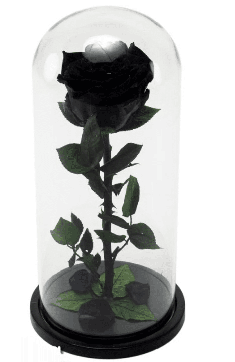 Стъкленицата е проектирана така, че да предпазва розата от прах и външни влияния, като същевременно осигурява оптимална видимост. Някои модели са снабдени с LED осветление, което добавя магическо сияние и създава романтична атмосфера, особено през нощта. Това прави черната роза в стъкленица не само подходяща за подарък, но и за интериорен акцент, който привлича погледите и вдъхновява.