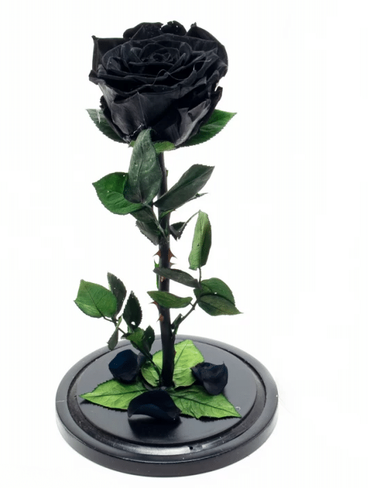 Черна роза в стъкленица е повече от обикновен декоративен елемент – тя е произведение на изкуството. Розата е внимателно подбрана и обработена, за да запази своята свежест и красота за дълъг период. Тя е поставена в стъкленица с кристална прозрачност, която подчертава нейните изящни детайли и придава усещане за лукс. Основата може да бъде изработена от висококачествено дърво или метал, което добавя допълнителна стабилност и стил към цялостния вид на продукта.